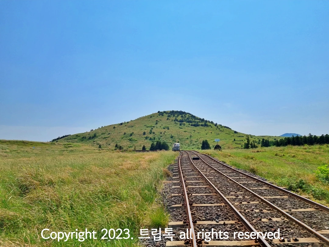 제주 레일바이크를 타면 용눈이 오름과 다랑쉬 오름을 편안하게 볼 수 있습니다.